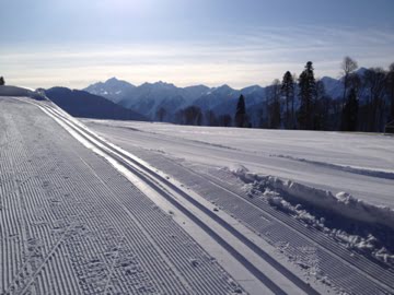 Фотографии сделаны 11 февраля в 8 утра. Как на них видно погода - яркое солнце, лыжня отлично подготовлена и ждет лучших спортсменов России для пробы олимпийских лыжных трасс.