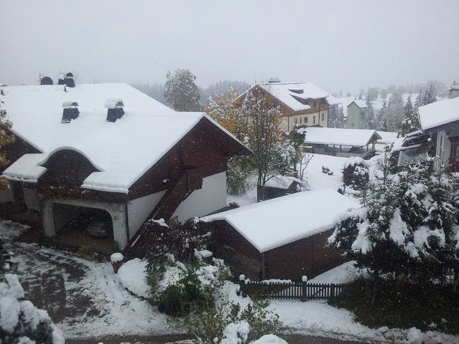 Вчера, 16 октября «внизу» в районе проживания команды на высоте 1000 метров выпал снег.