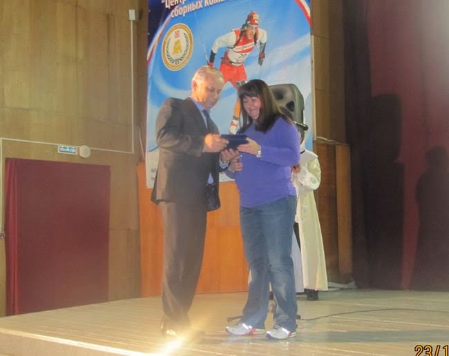 Сегодня вечером, 23 ноября 2012 года, состоялось награждение победителей и призеров "Кубка Хакасии" за прошедшие дни соревнований. В награждении приняли участие президент Федерации лыжных гонок России Елена Вяльбе и Министр спорта, туризма и молодежной политики Республики Хакасия Валерий Денщиков.
