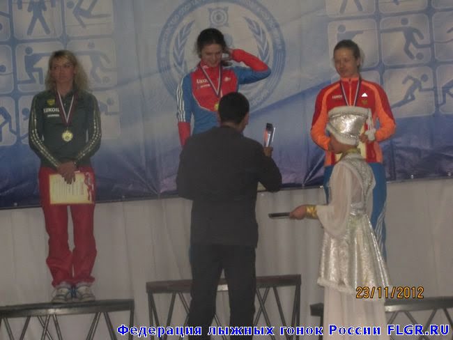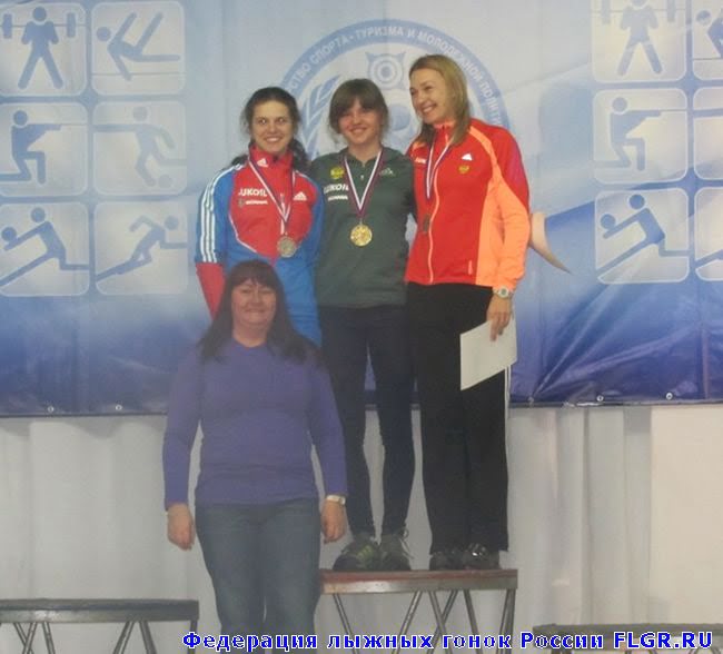 Награждение среди женщин за индивидуальный спринт свободным стилем. Победительница Елена Соболева, вторая Оксана Усатова (Тюменская область), третья Дарья Годованиченко (Тюменская область). Новости по теме здесь и здесь.