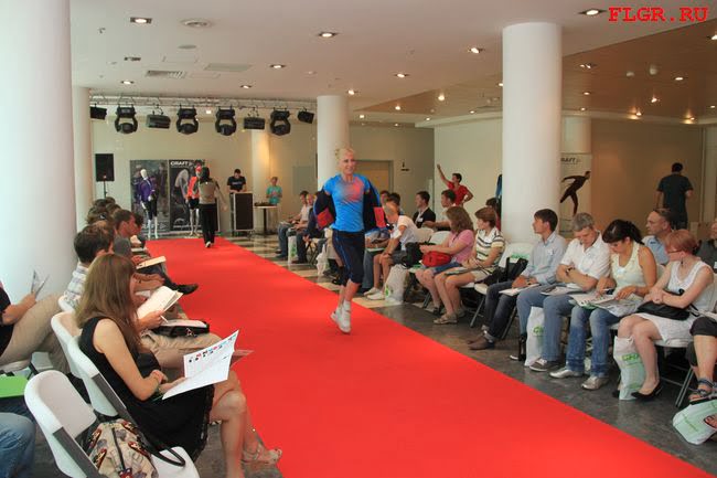 Презентация коллекции фирмы CRAFT проходила в два этапа. Первый включал в себя показ моделей в формате спортивного шоу. Те, кто демонстрировал одежду двигались по подиуму с различными акробатическими и танцевальными движениями, показывая личным примером насколько она удобна и практична.